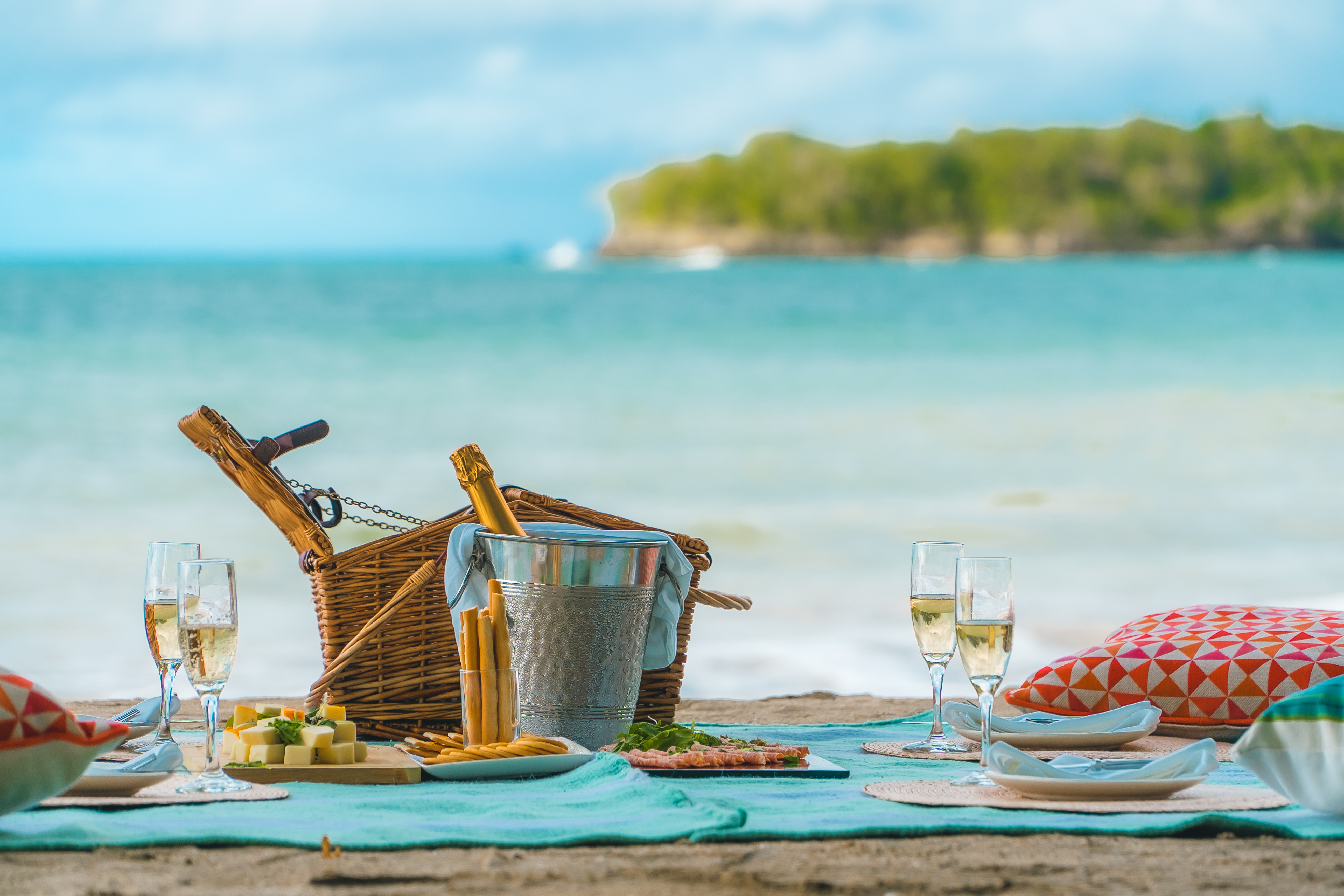 Imagine; a rug laid on the sandy beach not far from the water’s edge. A traditionally made cane hamper filled with goodies, some red or white wine, cold beers, fruits, cheeses, homebaked breads, proscuittio, quiches and cold cuts or whatever you ask us to pack!